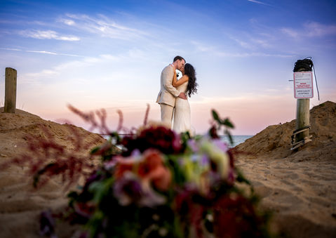 Capture the intimate and tender moments of love on the beach, with the sun setting and waves crashing in the background. These images showcase the beauty of love and connection in a natural and serene setting.